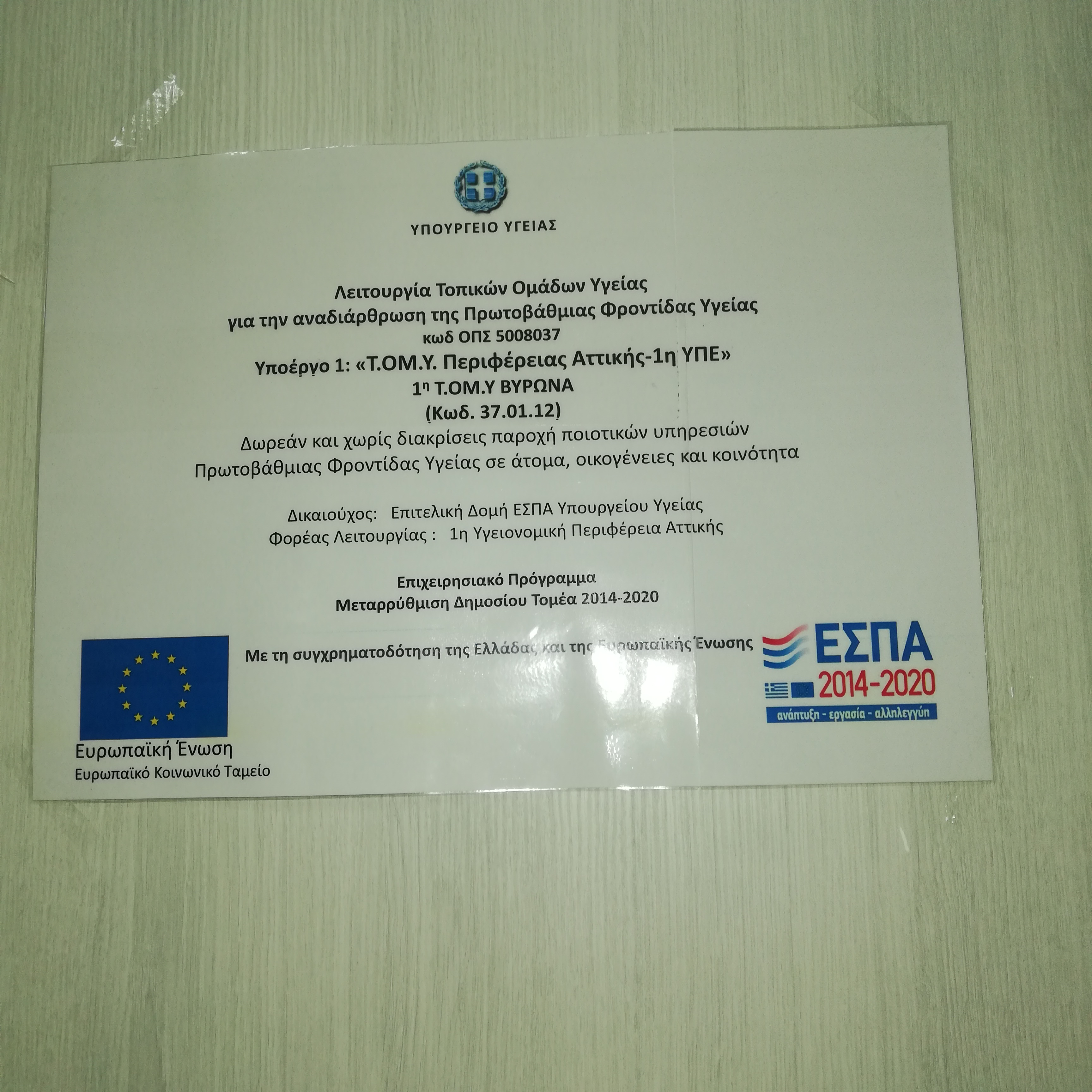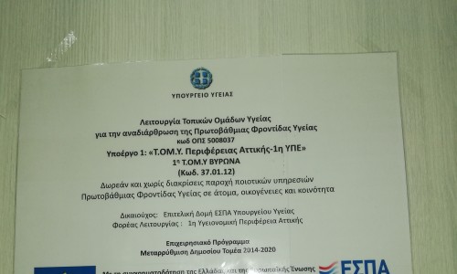 Η λειτουργία της Τοπικής Μονάδας Υγείας (ΤΟΜΥ) Βύρωνα έχει ξεκινήσει.