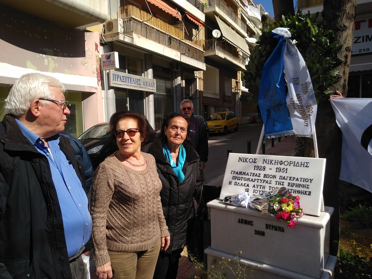 Πρόκειται για τον 22χρονο Νίκο Νικηφορίδη, γραμματέα της ΕΠΟΝ Παγκρατίου, που ηγήθηκε του πρώτου μετεμφυλιακού κινήματος ειρήνης, υπό τον τίτλο Φιλειρηνικό Μέτωπο Νέων. Δεκέμβρη 1950, ο Νικηφορίδης και άλλοι συναγωνιστές του πήγαν από την Αθήνα στη Θεσσαλονίκη για να οργανώσουν και εκεί την εκστρατεία διακίνησης της Έκκλησης της Στοκχόλμης, για την πλήρη κατάργηση των πυρηνικών όπλων. Τον Γενάρη 1951, δεκατέσσερις εξ αυτών συνελήφθησαν και φυλακίστηκαν, παραπεμπόμενοι, στη συνέχεια, ενώπιον έκτακτου στρατοδικείου με βάση τον νόμο 509. Ως ηγέτης της κίνησης, ο Νίκος Νικηφορίδης καταδικάστηκε σε θάνατο και εκτελέστηκε, ο δε τάφος του ακόμα αγνοείται.