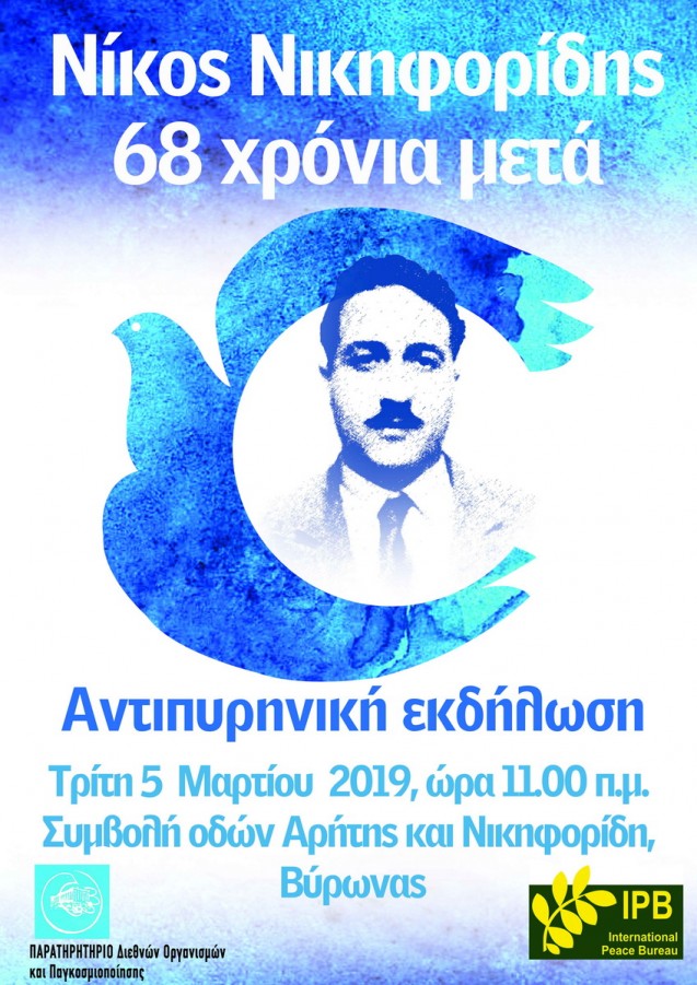 Τον πρώτο άνθρωπο στον κόσμο που έδωσε τη ζωή του στον αγώνα για την κατάργηση όλων των πυρηνικών όπλων, τίμησαν σήμερα το ΠΑΔΟΠ και η Πανελλήνια Ιατρική Εταιρεία κατά της Πυρηνικής και Βιοχημικής Απειλής, 68 χρόνια μετά τη δολοφονία του στη Θεσσαλονίκη (5.3.1951).