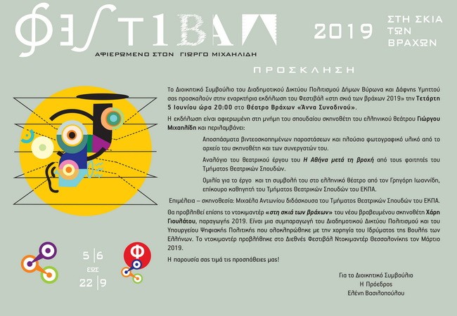 Πρόσκληση εναρκτήριας εκδήλωσης για το Φεστιβάλ «Στη Σκιά Των Βράχων 2019»