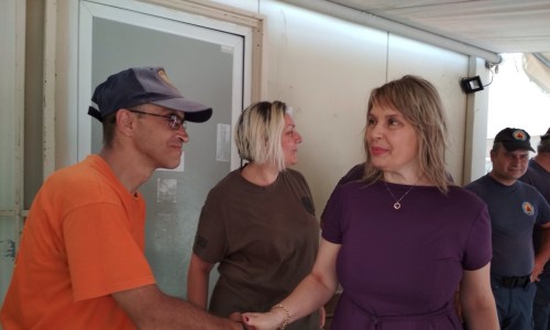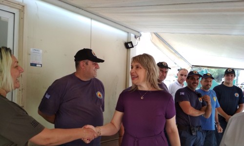 Συνάντηση του Δημάρχου Βύρωνα, Γρηγόρη Κατωπόδη με την Υφυπουργό Προστασίας του Πολίτη και υποψήφια με τον Σύριζα – Προοδευτική Συμμαχία, Κατερίνα Παπακώστα κατά τη διάρκεια της επίσκεψής της στο Πυροφυλάκιο του Δήμου, με αφορμή την επιφυλακή λόγω των έκτακτων καιρικών συνθηκών.