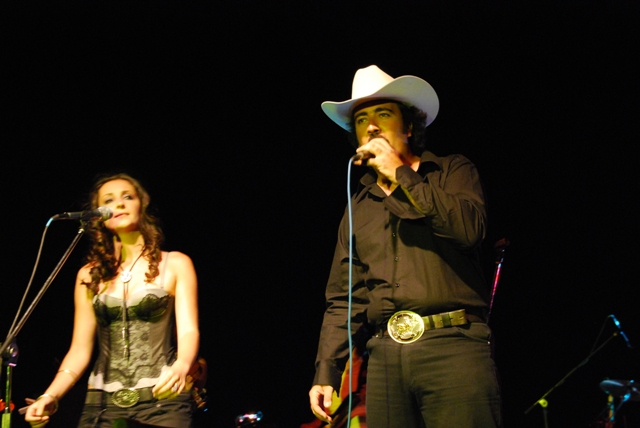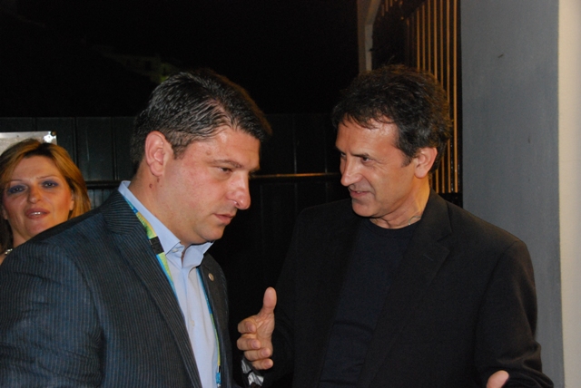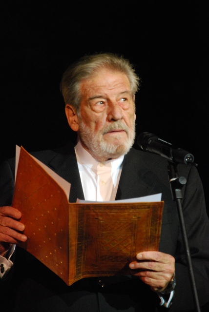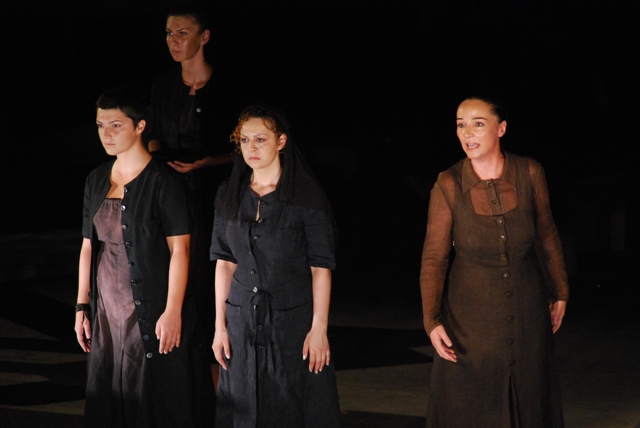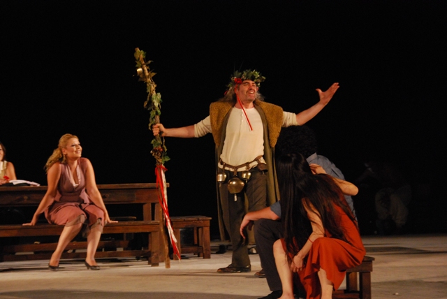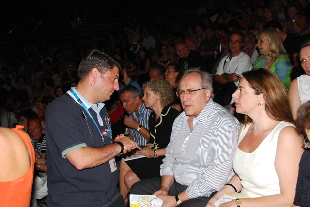 Ο Δήμαρχος Βύρωνα Νίκος Χαρδαλιάς με τη Μαργαρίτα Τσέπα, από την παράσταση "Τρωάδες" του Ευριπίδη, από το Εθνικό Θέατρο Αλβανίας, σε σκηνοθεσία Βαγγέλη Θεοδωρόπουλου.