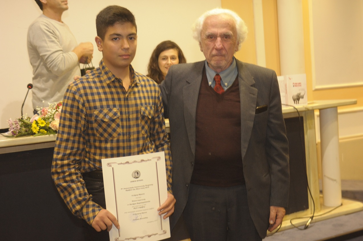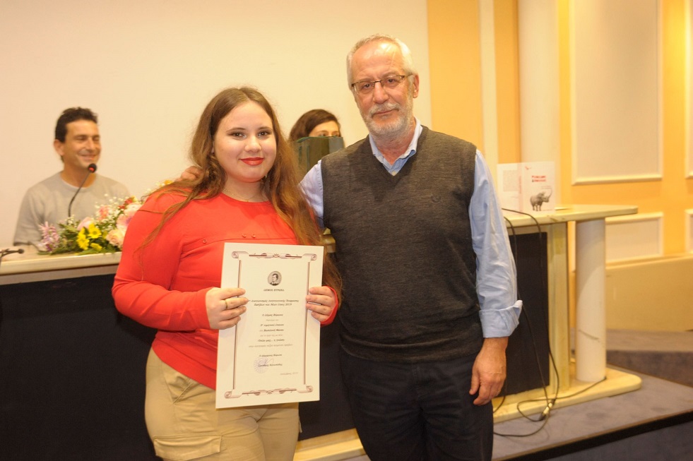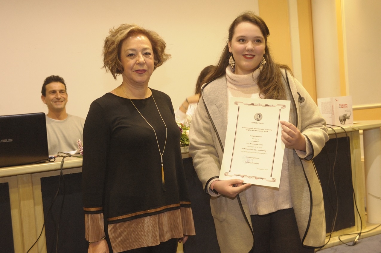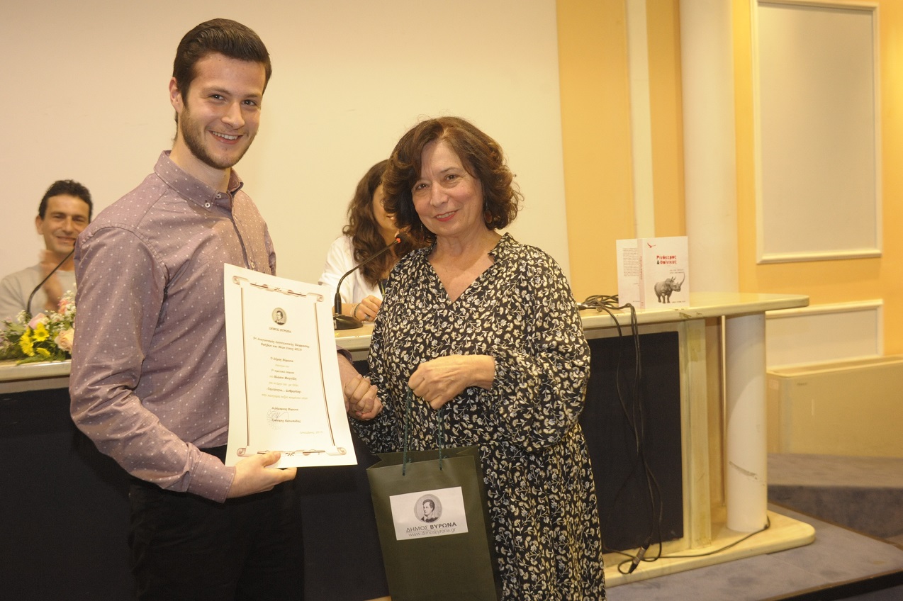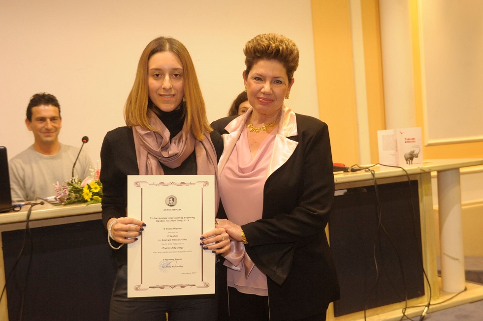 Την Παρασκευή 27 Δεκεμβρίου 2019 στο κατάμεστο αμφιθέατρο «Αντώνης Τρίτσης» του Πνευματικού Κέντρου Δήμου Αθηναίων, πραγματοποιήθηκε η απονομή των βραβείων του 5ου Λογοτεχνικού Διαγωνισμού, που οργανώνει κάθε χρόνο ο Δήμος Βύρωνα, στους εφήβους και νέους που διακρίθηκαν και στα μέλη της Πανελλήνιας Νεανικής Λογοτεχνικής Συντροφιάς. Η φετινή εκδήλωση τελούσε υπό την αιγίδα της Α.Ε. του Προέδρου της Δημοκρατίας κ. Προκοπίου Παυλοπούλου.