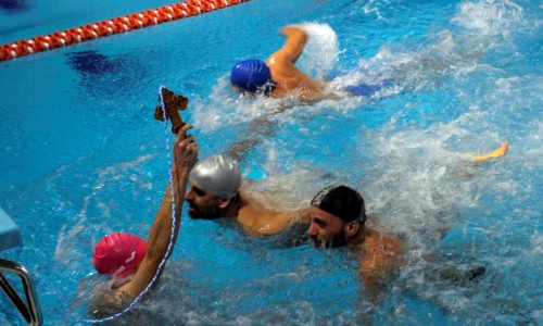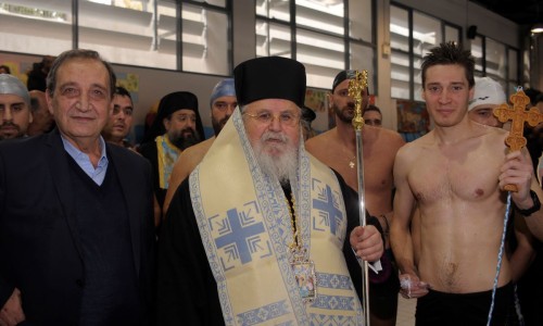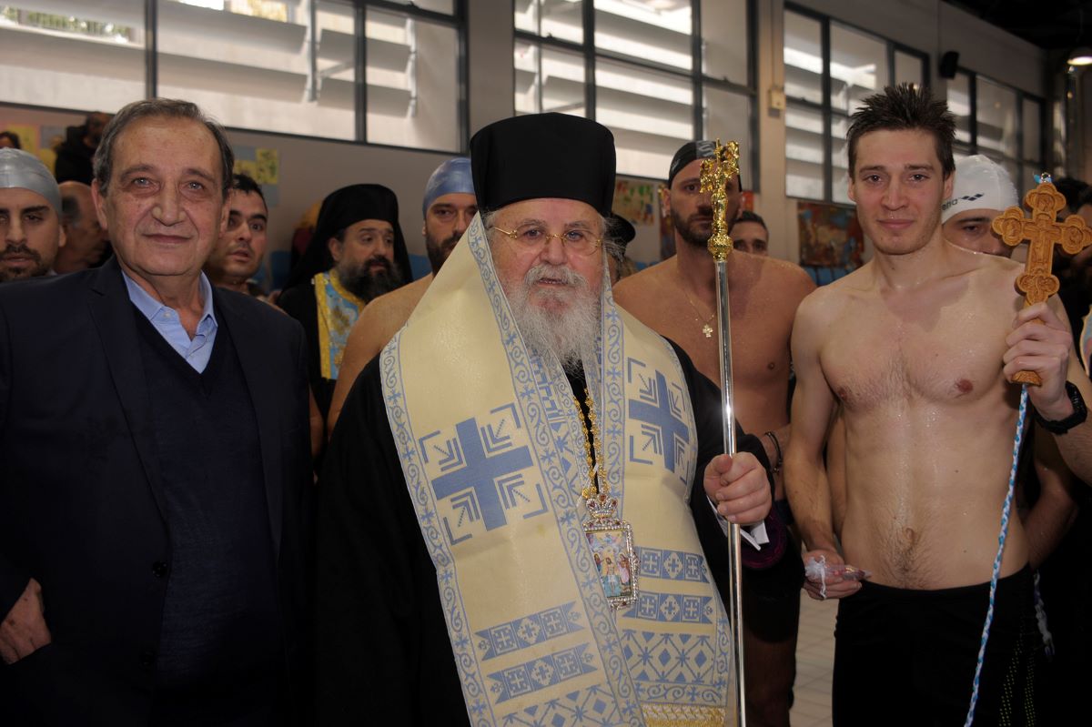 Μετά τον Αγιασμό των Υδάτων ακολούθησε η καθιερωμένη ανέλκυση του Τιμίου Σταυρού από μέλη του Κολυμβητηρίου Βύρωνα.