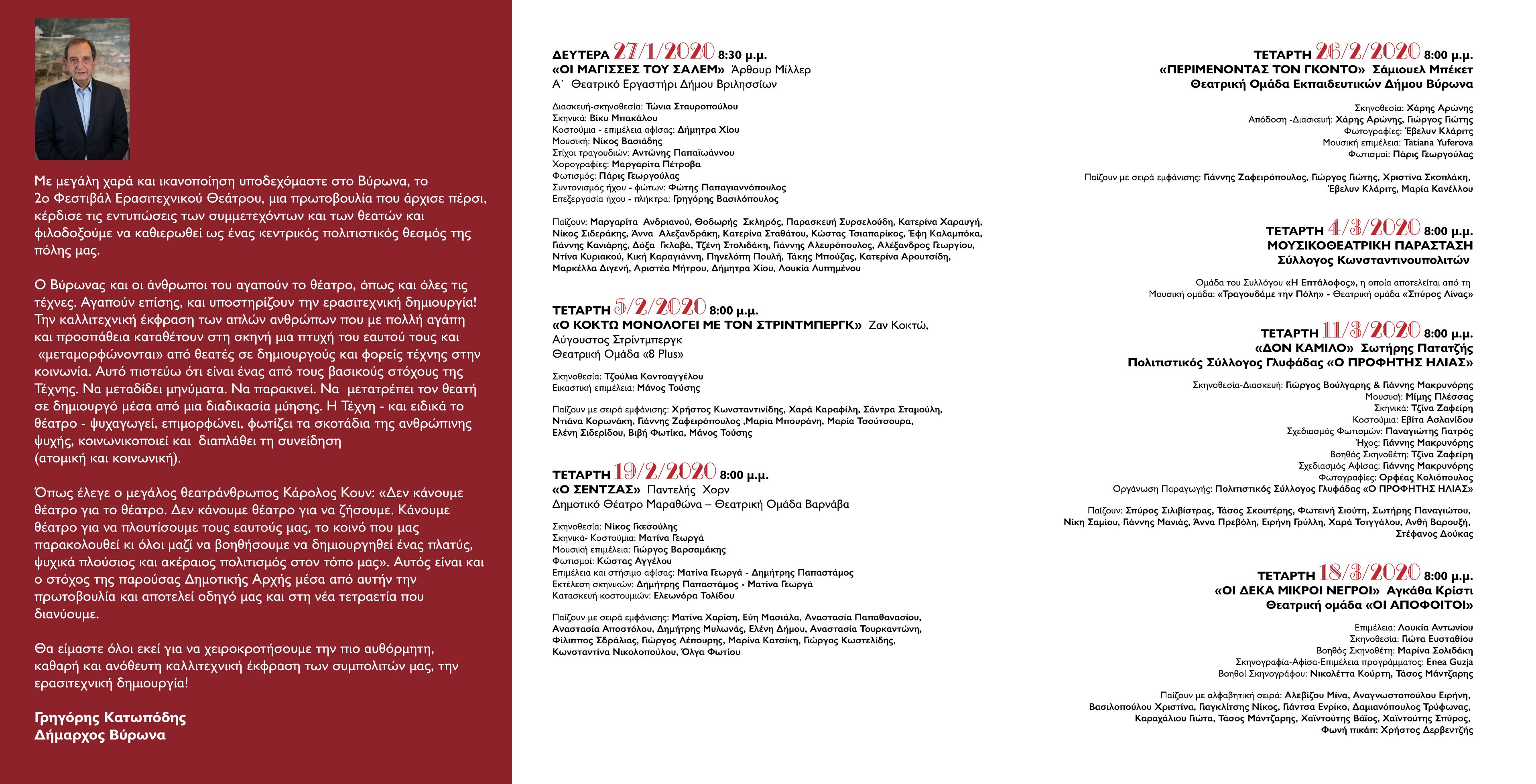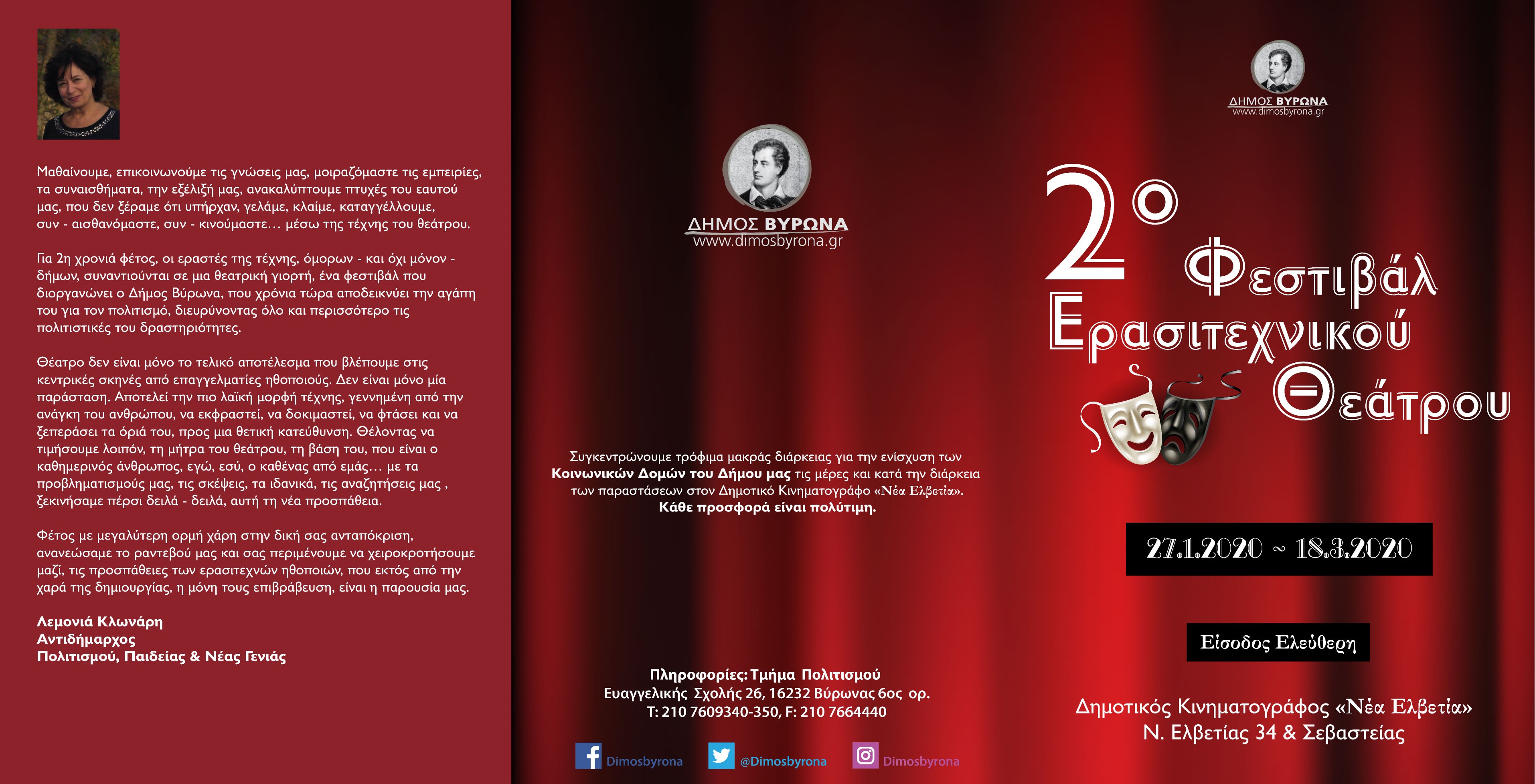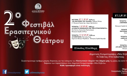 To πρόγραμμα του 2ου Φεστιβάλ Ερασιτεχνικού Θεάτρου Δήμου Βύρωνα από τις 27 Ιανουαρίου έως 18 Μαρτίου 2020