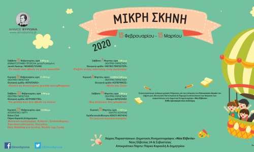 Πρεμιέρα για τη Μικρή Σκηνή του Δήμου Βύρωνα από τις 15 Φεβρουαρίου έως 15 Μαρτίου 2020 - Δείτε όλο το πρόγραμμα