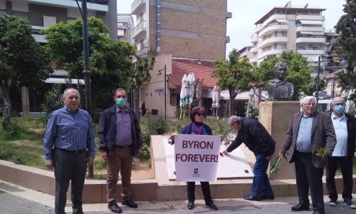 Εκδήλωση για να τιμήσει τα 196 χρόνια από το θάνατο του Λόρδου Βύρωνα, στο Μεσολόγγι στις 19 Απριλίου 1824, πραγματοποίησε στο μνημείο που βρίσκεται στην πλατεία Αγίου Λαζάρου, ο Σύνδεσμος Μπάϊρον, την Κυριακή 26 Απριλίου.