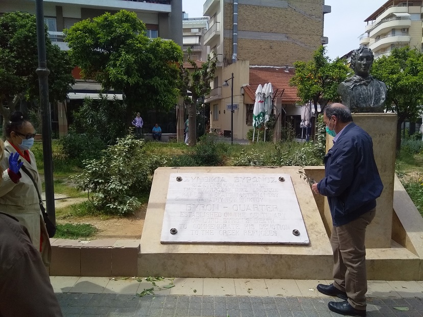 Ο Δήμαρχος Βύρωνα, Γρηγόρης Κατωπόδης, πέρασε πρώτος από την προτομή του Λόρδου Βύρωνα, αφήνοντας ένα κλαδί δάφνης και ακολούθησε ο Αντιδήμαρχος Κοινωνικής Προστασίας και Αλληλεγγύης Χρήστος Σπυρόπουλος.