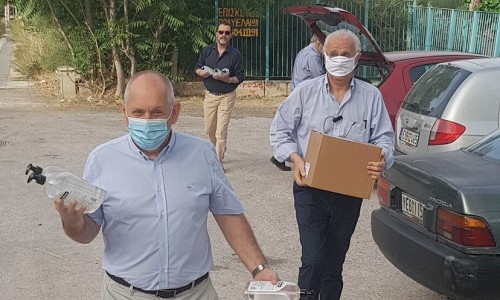 Μάσκες και αντισηπτικά για όλους τους μαθητές και καθηγητές των γυμνασίων και λυκείων του Βύρωνα, που επαναλειτουργούν από την ερχόμενη Δευτέρα 18 Μαϊου, παρέδωσε σήμερα αντιπροσωπεία της Δημοτικής Αρχής που επισκέφθηκε τα σχολεία του Δήμου.
