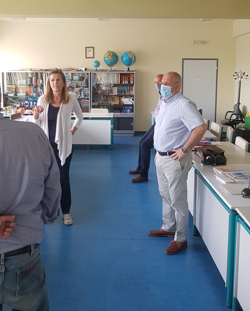 Η αντιπροσωπεία που αποτελούνταν από τον Πρόεδρο του Δημοτικού Συμβουλίου, Γιώργο Πλακίδα, τους Αντιδημάρχους Μιχάλη Καραγιάννη, Δημήτρη Κόκκαλη και Χρήστο Σπυρόπουλο και τον Πρόεδρο της Β’βάθμιας Σχολικής Επιτροπής, Βασίλη Τζαφά, ενημερώθηκε επίσης από τους διευθυντές των σχολείων για τυχόν ανάγκες της τελευταίας στιγμής, ενόψει της επανέναρξης των μαθημάτων.