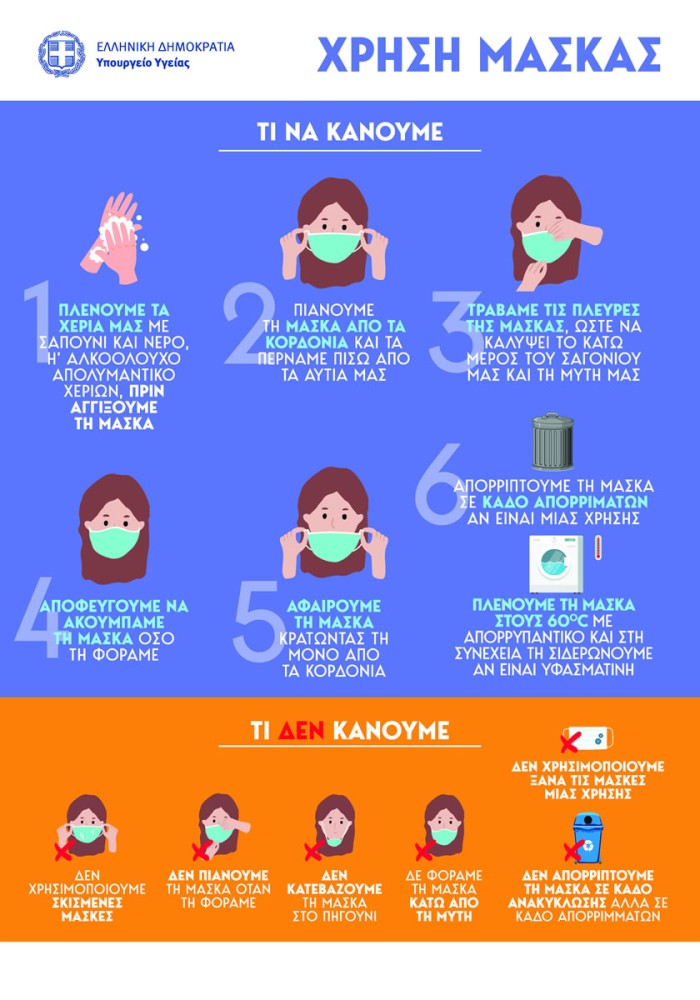 Οδηγίες για τη σωστή χρήση της μάσκας για προφύλαξη από τον κορωνοϊό