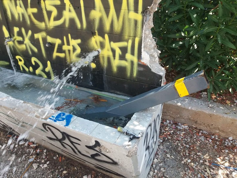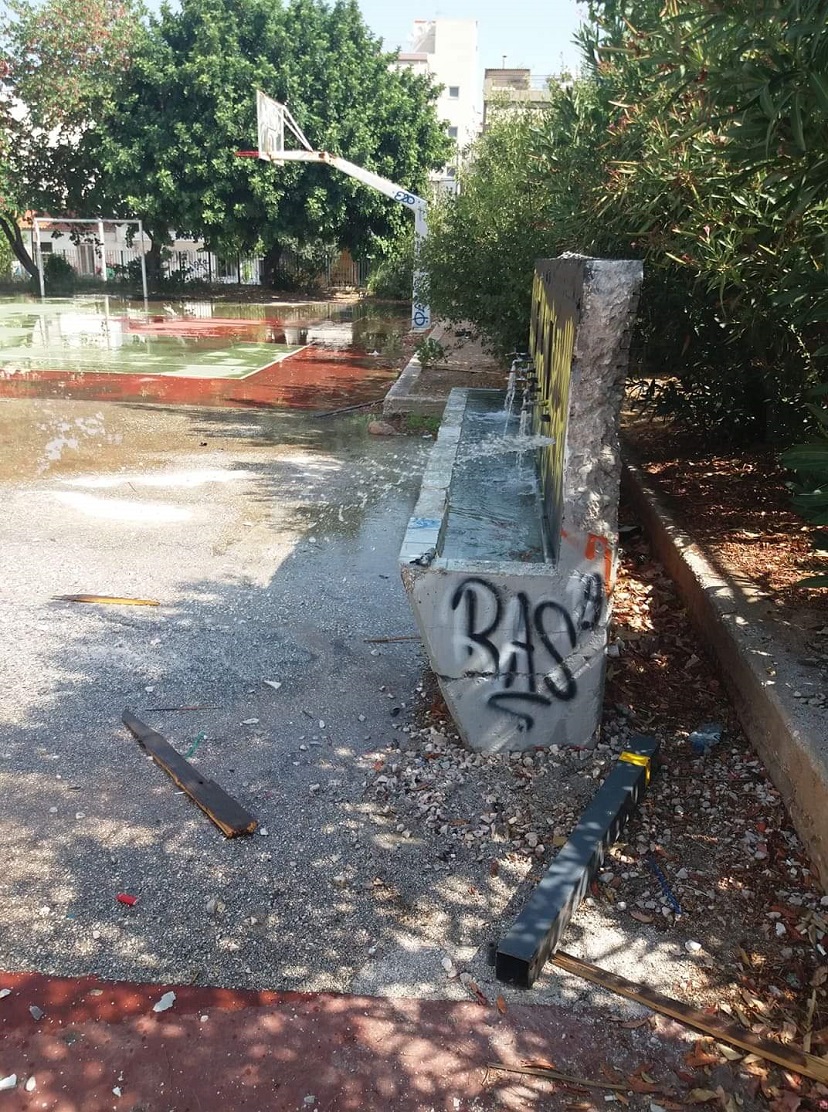 · Καταστροφή της πέργολας του 3ου Λυκείου και μίας βρύσης με αποτέλεσμα να τρέχει ασταμάτητα το νερό.
