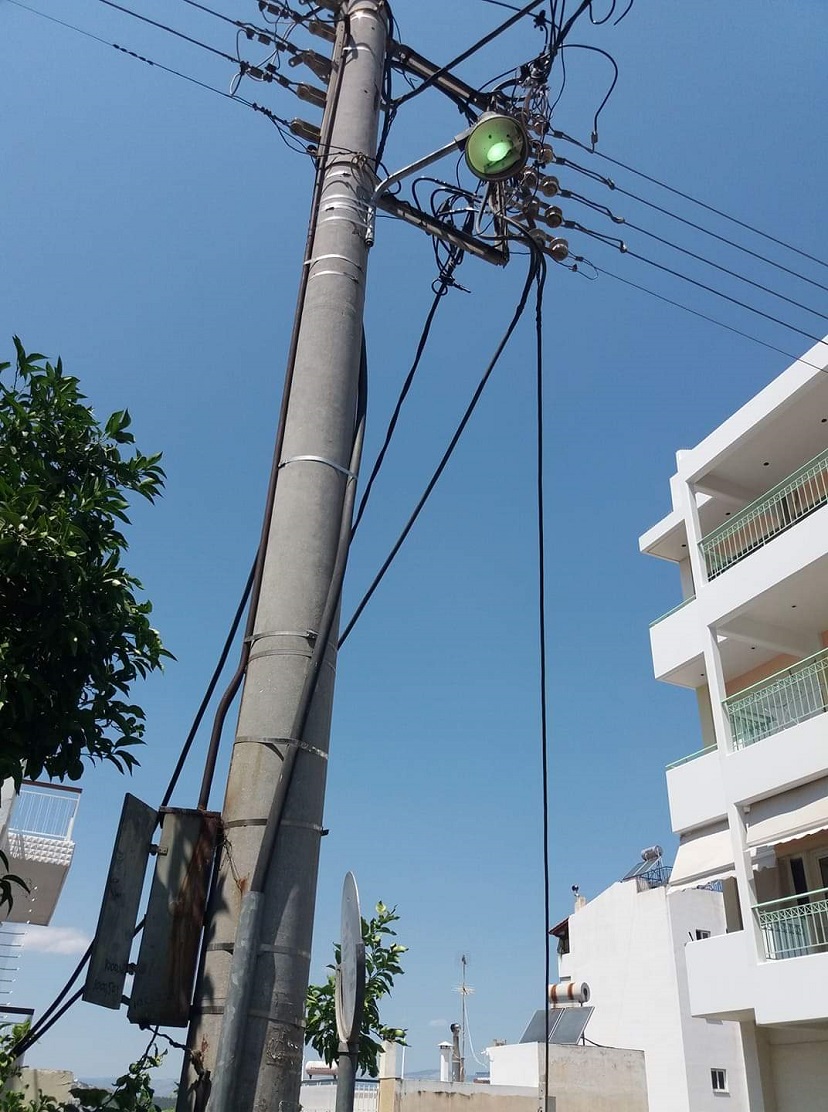 · Κομμένα καλώδια σε κολώνα, στο πάρκο στη συμβολή των οδών Άνδρου και Γρηγορίου Ε’.
