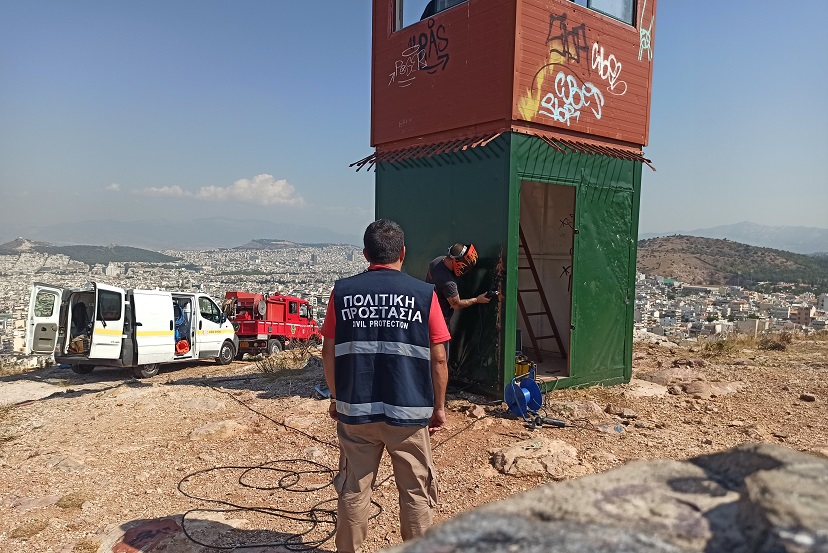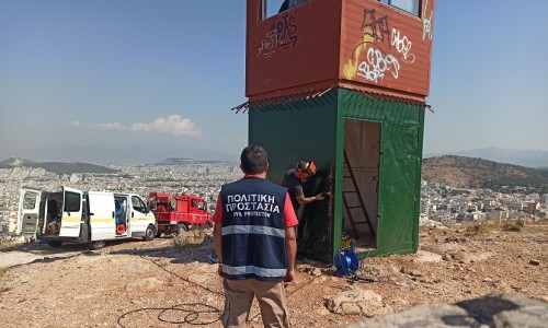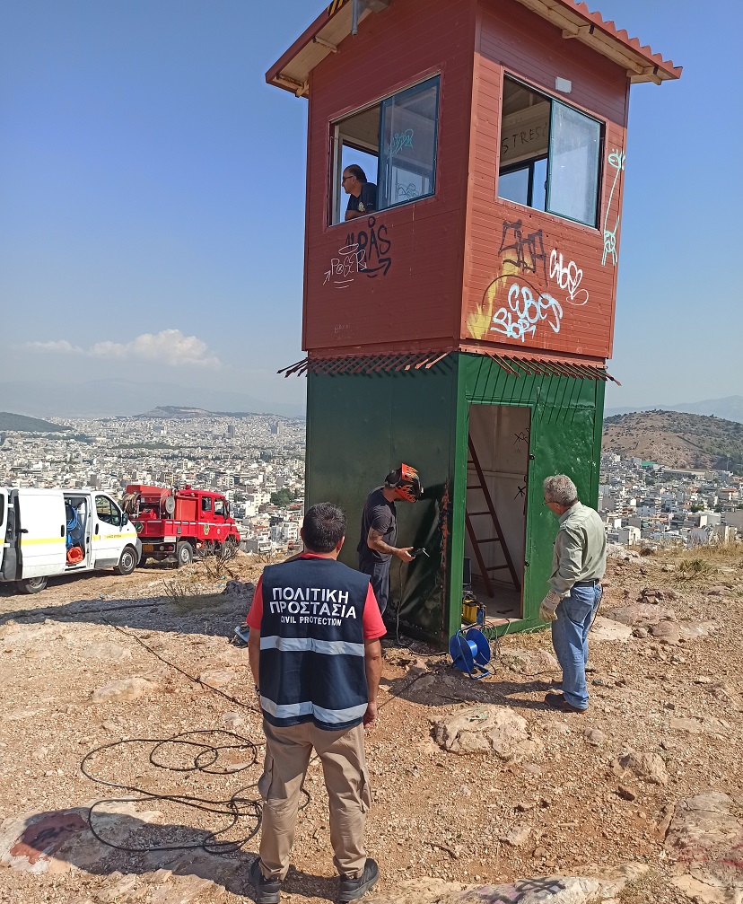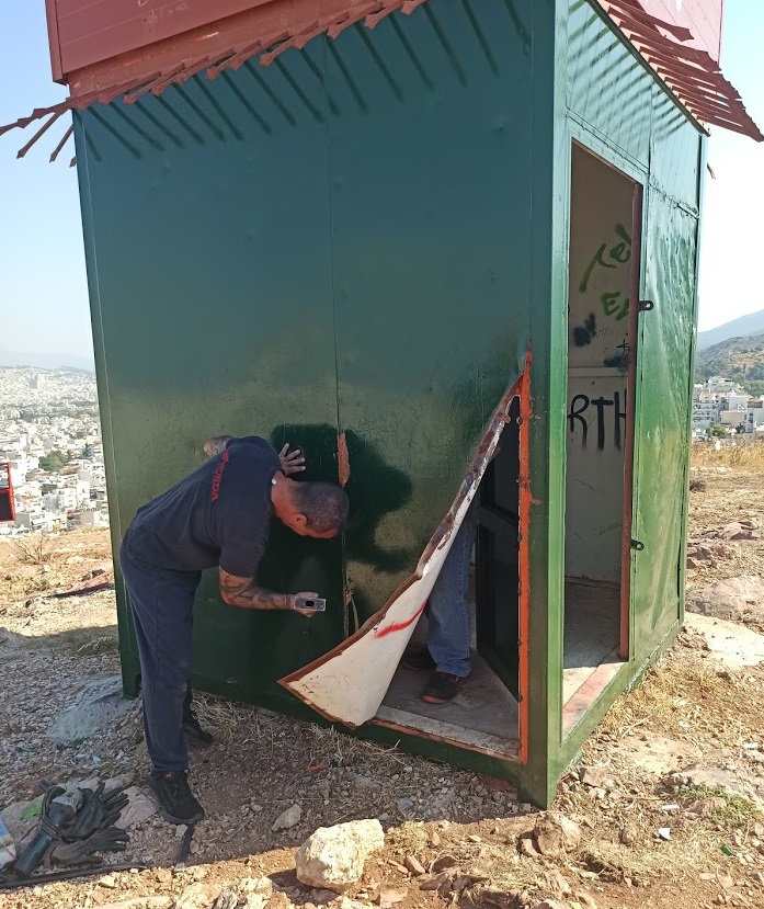 Θύμα βανδαλισμού έγινε άλλη μια εγκατάσταση στα όρια του Δήμου μας. Τη Δευτέρα 17 Αυγούστου, κλιμάκιο της Εθελοντικής Ομάδας Πολιτικής Προστασίας του Δήμου, διαπίστωσε ότι κατά τις νυχτερινές ώρες άγνωστοι προκάλεσαν υλικές ζημιές στο πυροφυλάκιο – παρατηρητήριο που βρίσκεται στον λόφο Γρανικού (τέρμα οδού Πανουργιά). Κατόπιν συνεννόησης του αρμόδιου αντιδημάρχου για την Πολιτική Προστασία, Κωνσταντίνου Αγγέλη με τον Σύνδεσμο Προστασίας και Ανάπτυξης Υμηττού (Σ.Π.Α.Υ.), έγινε άμεσα αυτοψία από το Τμήμα Πολιτικής Προστασίας συνοδεία τεχνιτών του Δήμου προκειμένου να διαπιστωθεί το μέγεθος των ζημιών.