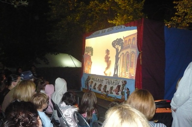Μπορεί να ήταν συννεφιασμένο το βράδυ της Κυριακής 21 Σεπτεμβρίου και να είχε και αρκετή ψύχρα, όμως η πλατεία στα Αγαλματάκια γέμισε και πάλι ασφυκτικά από παιδιά και γονείς, οι οποίοι παρακολούθησαν την παράσταση του Θεάτρου Σκιών- Καραγκιόζης: "Το μαγεμένο Δάσος". Όσοι δεν τα καταφέρατε να έρθετε χθες, έχουμε άλλη μία παράσταση Καραγκιόζη, επόμενη Κυριακή, στο 8ο Δημοτικό Σχολείο.