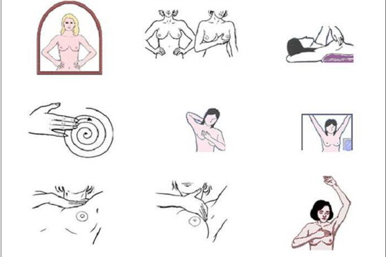 Στην εικόνα που ακολουθεί απεικονίζεται η τεχνική αυτοεξέτασης του μαστού.