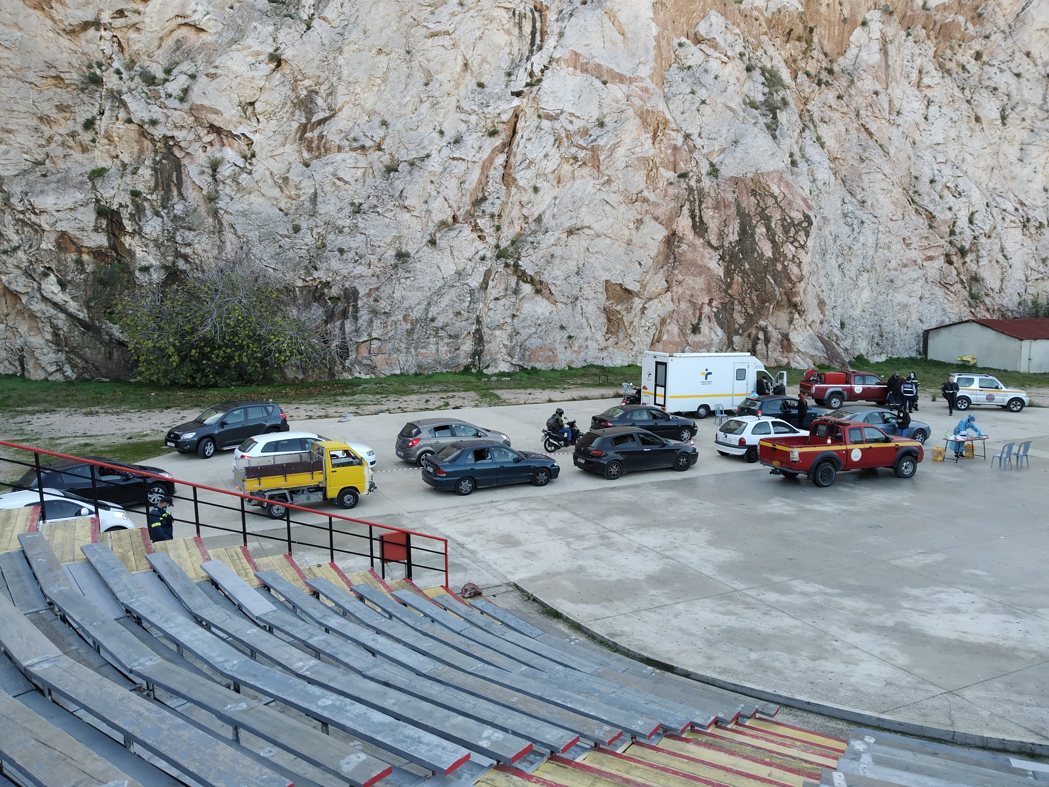 Δωρεάν rapid test ανίχνευσης κορονοϊού έγιναν, την παραμονή των Χριστουγέννων, στο Θέατρο Βράχων «Μελίνα Μερκούρη» από το Δήμο Βύρωνα και τον Εθνικό Οργανισμό Δημόσιας Υγείας (ΕΟΔΥ). Πολίτες όλων των ηλικιών προσήλθαν με τα οχήματα τους (δεν εξυπηρετούνταν πεζοί), προκειμένου να εξεταστούν, χωρίς να χρειαστεί καν να αποβιβαστούν από αυτά, αφού η δειγματοληψία γινόταν στα αυτοκίνητα και στα δίκυκλα.