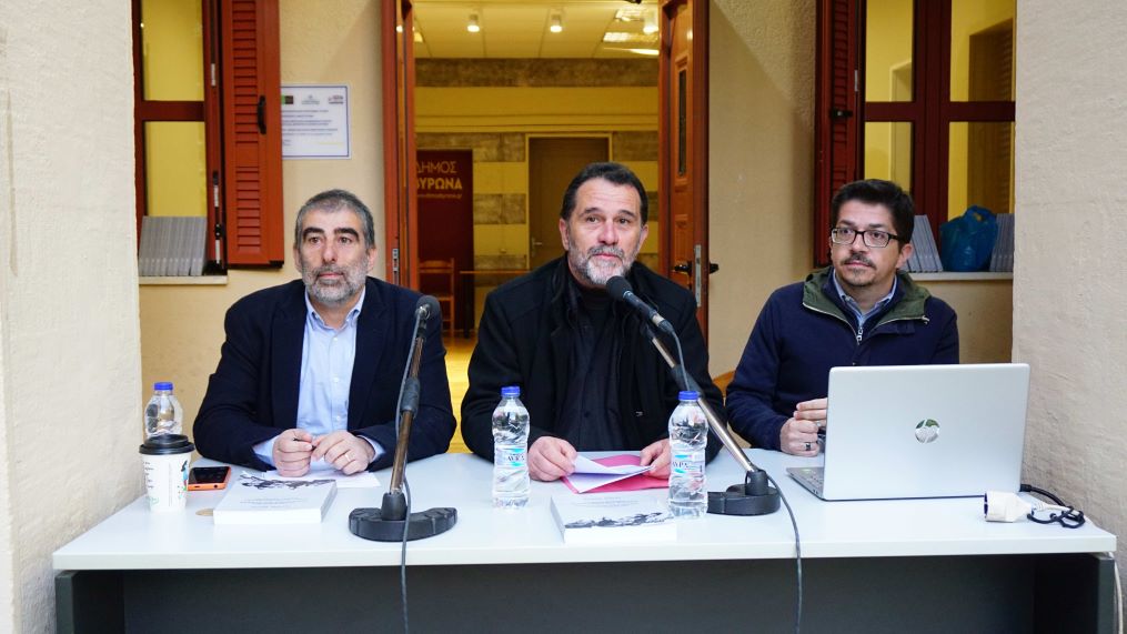 Στην όμορφη εκδήλωση στο κέντρο της πόλης μας, η παρουσίαση έγινε από τον συγγραφέα Λουκά Ζώνα και τον ιστορικό Μιχάλη Βαρλά με το συντονισμό του καθηγητή ιστορίας και Προέδρου του Δ.Σ. Βύρωνα, Γιώργου Πλακίδα.