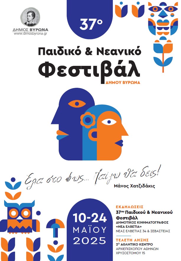 Ο Δήμος Βύρωνα, με συνέπεια και σεβασμό στη μακρά πολιτιστική του παράδοση, διοργανώνει το 37ο Παιδικό Νεανικό Φεστιβάλ, από τις 10 έως και τις 24 Μαΐου 2025, με τίτλο: «Έλα στο φως... Παίζω, θα δεις!»