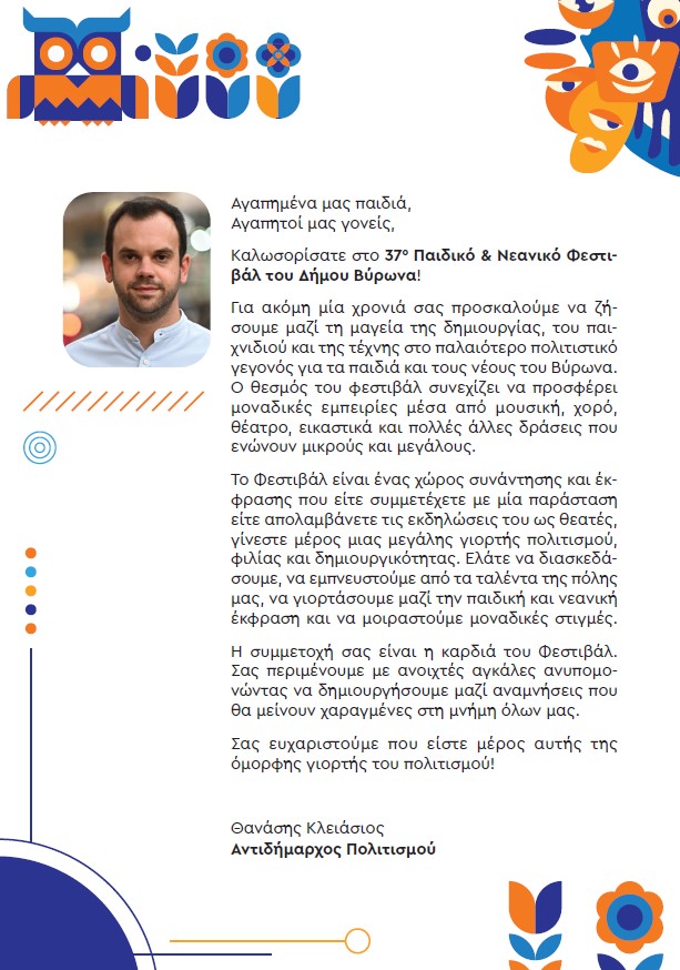 Ο Δήμαρχος Βύρωνα κ. Αλέξης Σωτηρόπουλος κηρύσσει τη Λήξη του 37ου Παιδικού & Νεανικού Φεστιβάλ και μας προσκαλεί όλους να ξεκινήσουμε μαζί την προετοιμασία για το 38ο!