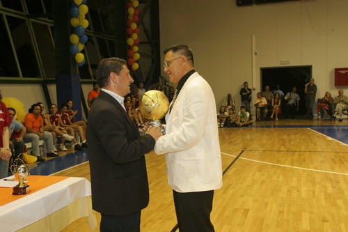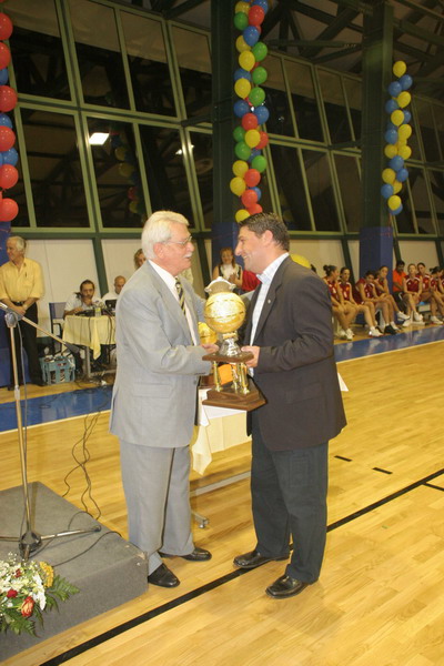 Στο τέλος της εκδήλωσης ο κ. Χαρδαλιάς βράβευσε την Εθνική Ομάδα Μπάσκετ. Το βραβείο παρέλαβε για λογαριασμό της Εθνικής Ομάδας ο Πρόεδρος της Εθνικής Ομοσπονδίας Καλαθοσφαίρισης κ. Μιαούλης.
