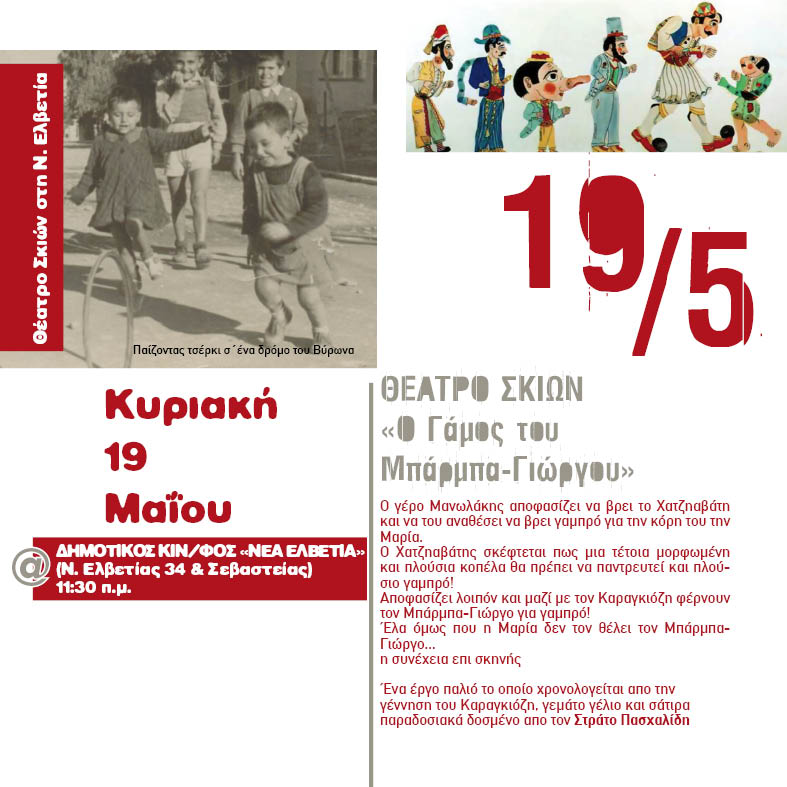 Γειτονιές Πολιτισμού 2013 Θέατρο Σκιών: Ο γάμος του Μπάρμπα-Γιώργου - 11:30 - Δημοτικός Κινηματογράφος Νέα Ελβετία