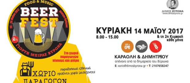 Την Κυριακή 11 Ιουνίου 2017, στο πάρκο της Καραολή & Δημητρίου απέναντι από το Δημαρχείο, θα διεξαχθεί η κοινωνική δράση “Χωριό Παραγωγών”, που διοργανώνεται από τον Δήμο Βύρωνα με ώρες λειτουργίας 08:00 – 15:00.