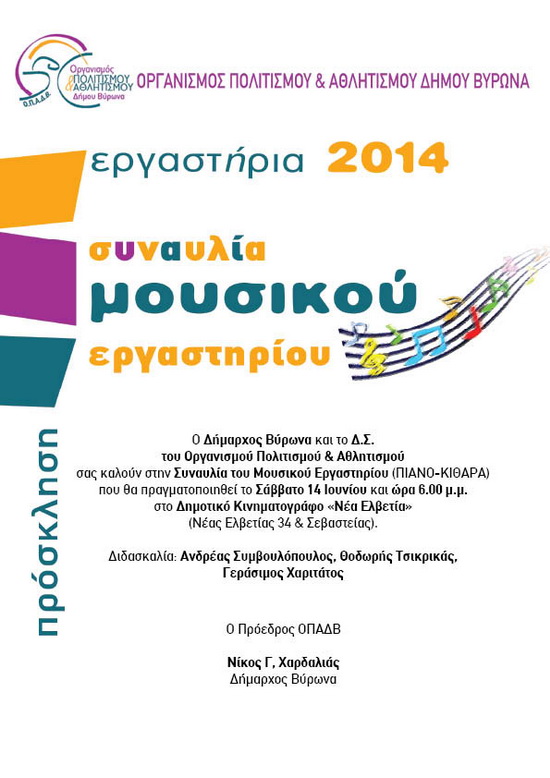 Πρόσκληση συναυλίας μουσικού εργαστρίου