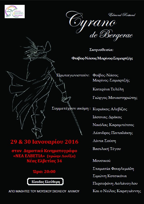 Πρωταγωνιστούν: Φοίβος-Νάσος Μαρίνος-Σαμαρτζής (Συρανό), Κατερίνα Τελέλη (Ρωξάνη), Γιώργος Μοναστηριώτης (Κριστιάν).