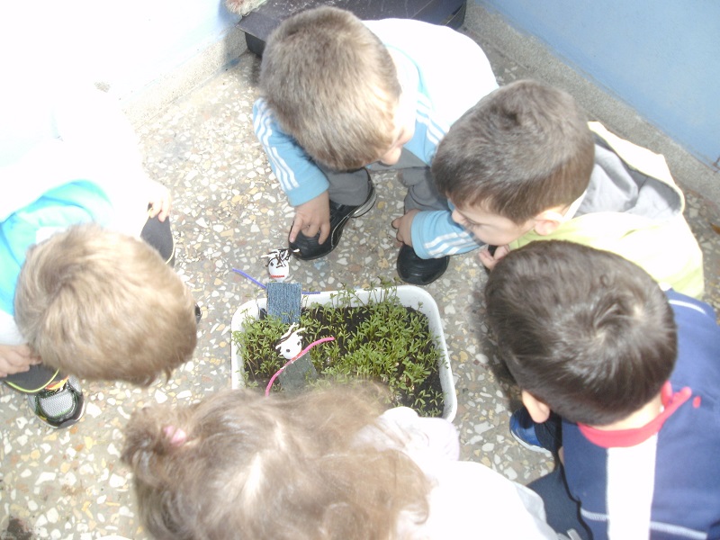 Μια και δυο στην αυλή του σχολείου γίναμε γεωργοί. Μια βροχερή μέρα με τη βοήθεια του καλού μας κρεοπώλη (μας προμήθευσε φαρδιά φελιζόλ) τα οποία εμείς ονομάσαμε χωράφι της κάθε ομάδας γράφοντας γύρω – γύρω τα ονόματά μας, κάναμε την επιθυμία μας, πράξη.