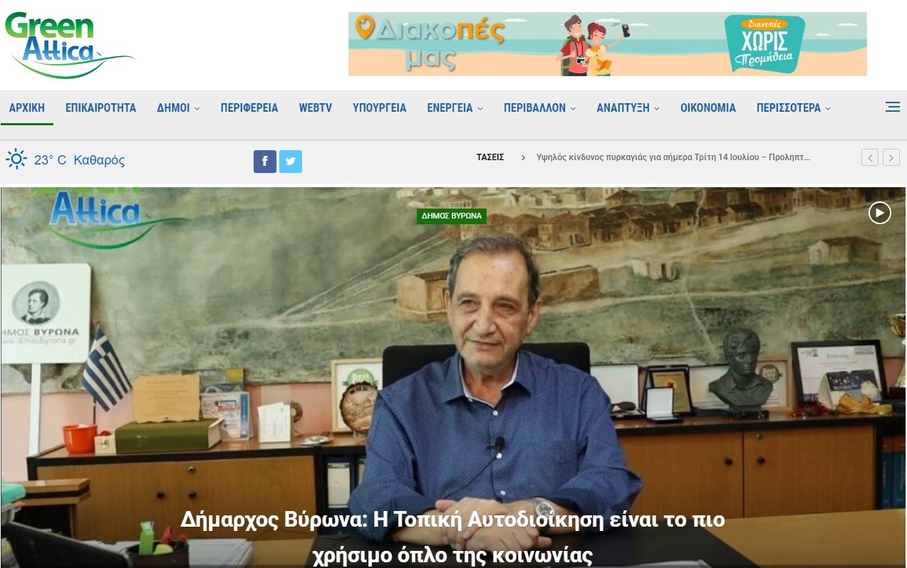 Συνέντευξη του Δημάρχου Βύρωνα, Γρηγόρη Κατωπόδη στo web tv της ιστοσελίδας greenattica.gr