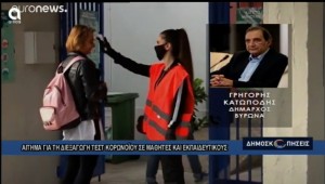 Ο Γρηγόρης Κατωπόδης επεσήμανε μεταξύ άλλων ότι κάθε φορά που εμφανίζονται κρούσματα κορονοϊού στα σχολεία, πρέπει να γίνονται τα απαραίτητα τεστ σε μαθητές και εκπαιδευτικούς έτσι ώστε να εξασφαλίζεται, τόσο η προστασία των υπόλοιπων μελών της σχολικής κοινότητας, όσο και οι προϋποθέσεις, ώστε το σχολείο να συνεχίσει να λειτουργεί κανονικά. "Με τις δύο επιστολές που στείλαμε στους Υπουργούς Εσωτερικών και Παιδείας ζητήσαμε χρηματοδότηση από την Πολιτεία για να μπορούμε να κάνουμε αυτά τα τεστ που είναι αναγκαία", τόνισε χαρακτηριστικά ο Δήμαρχος Βύρωνα μιλώντας στην εκπομπή "Δημοσκοπήσεις" και το δημοσιογράφο Γιώργο Λαιμό.