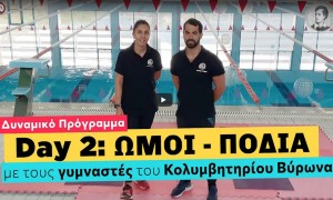 Οι γυμναστές του Κολυμβητηρίου του Δήμου Βύρωνα Κώστας Δαβερώνας και Στέλλα Δελατόλα σας προτείνουν ένα δυναμικό πρόγραμμα για την εκγύμναση των ώμων και των ποδιών, με ένα κοντάρι σκούπας και δύο μπουκαλάκια νερό!
